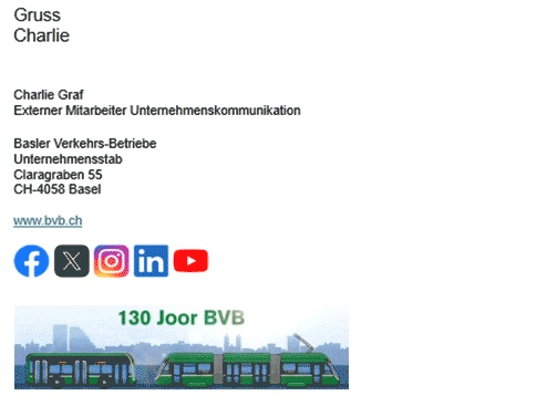 Zum 130-jährigen Jubiläum der BVB zierte ein animiertes Banner die E-Mail-Signatur der BVB.