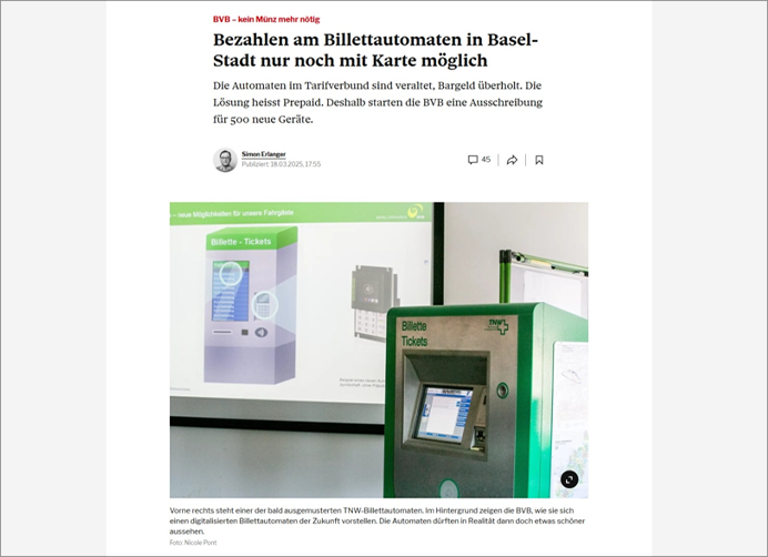 die Abbildung sehr schlicht zu halten, da das endgültige Aussehen der Automaten noch nicht festgelegt ist. Die Basler Zeitung
